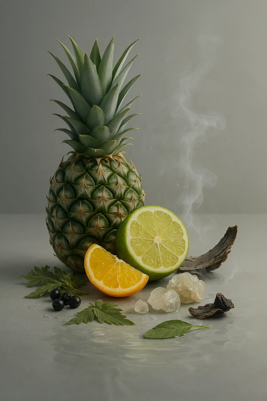 En tête, la bergamote de Calabre et l’ananas ouvrent la fragrance avec énergie et modernité.