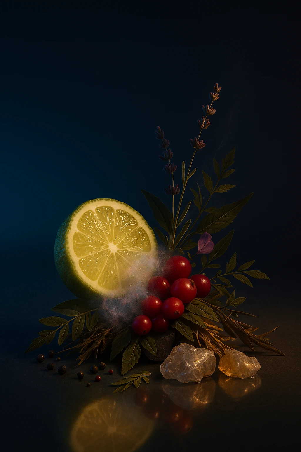 Solstice capture la puissance brute de la nature, entre fraîcheur aromatique et sensualité boisée.